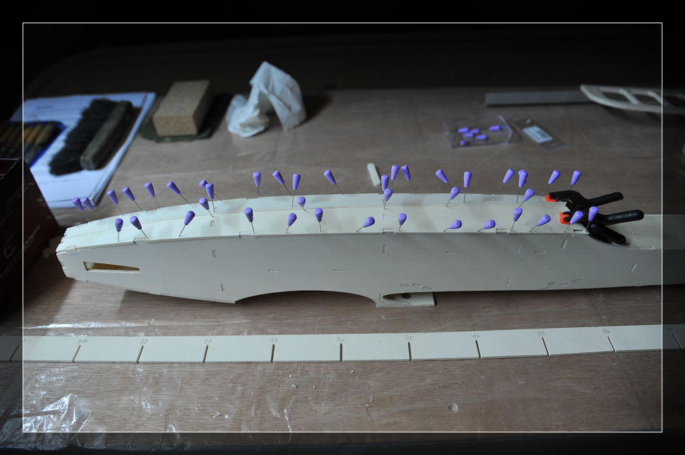 Tipp: Bevor die Kielleiste eingesetzt wird, sollten die Einschnitte ein wenig mit der Feile geweitet werden. Ich hatte die Leiste nach dem provisorischen Einstecken wieder herausnehmen wollen… und schon hat es KNACK gemacht. Achtet auf eine leichtgängige Monatge / Demontage.