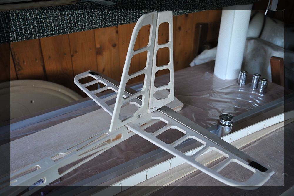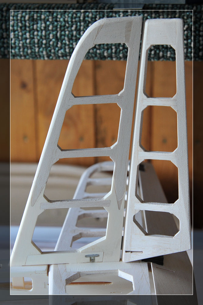Hier sind nun die ersten Leimungen für das Seitenleitwerk zu erkennen: