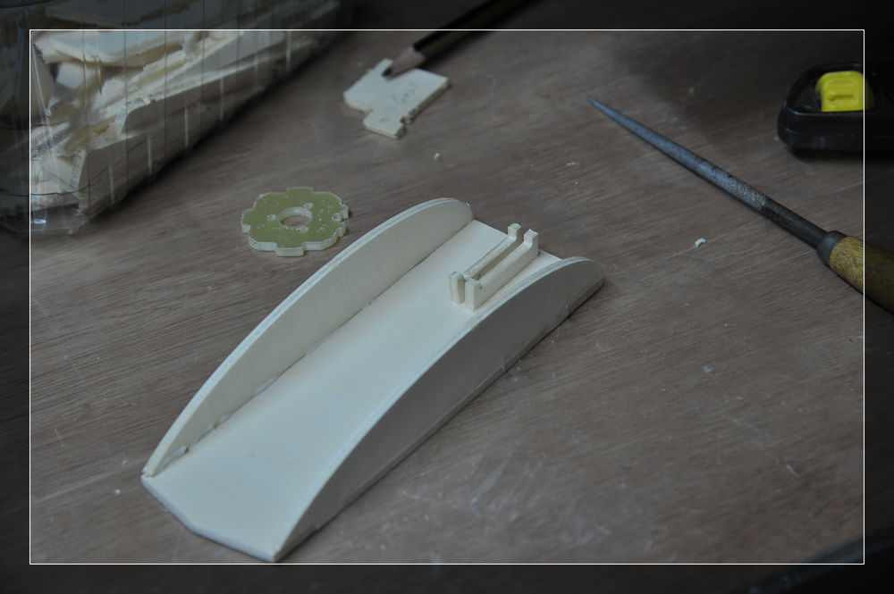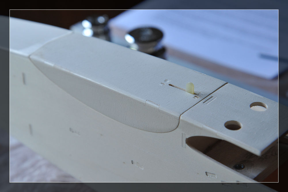 Links im Bild sieht man ein angeschrägtes Balsoholz, welches die Haube vorne niederhalten soll. Deshalb auch der schöne Name Kabinenhaubenniederhalter.