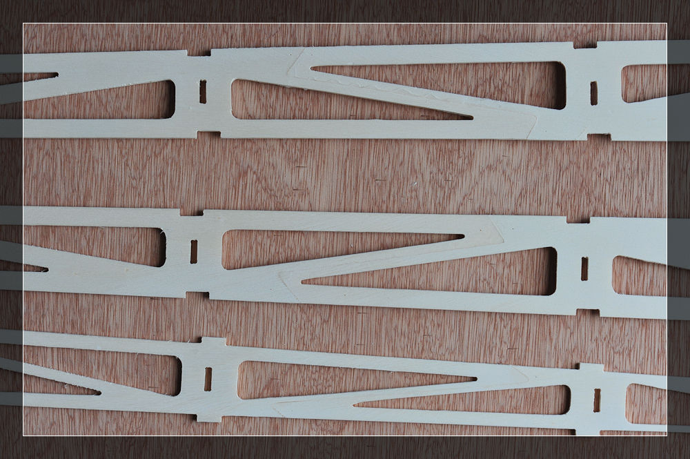 Die zwei Seitenwände und der Rumpfboden bestehen jeweils aus zwei Teile und müssen zuerst verleimt werden. Hierbei ist es wichtig, dass die Spitzen ein wenig abgerundet werden, damit die zwei Teile 100%-ig passen.
