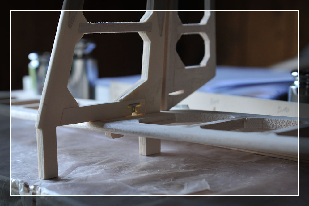 Hier sind nun die ersten Leimungen für das Seitenleitwerk zu erkennen: