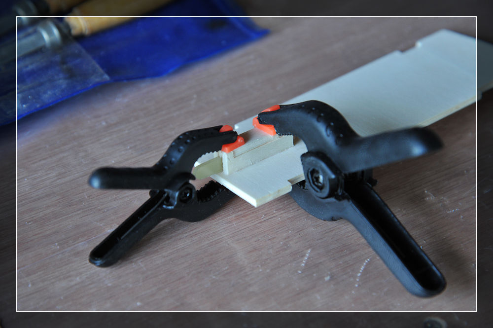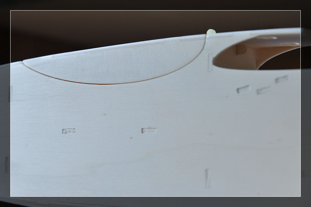 Links im Bild sieht man ein angeschrägtes Balsoholz, welches die Haube vorne niederhalten soll. Deshalb auch der schöne Name Kabinenhaubenniederhalter.