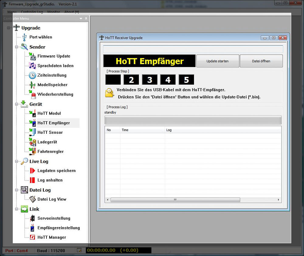 Alle Einheiten (Sender, Empfänger, GPS) auf den aktuellen Softwarestand bringen