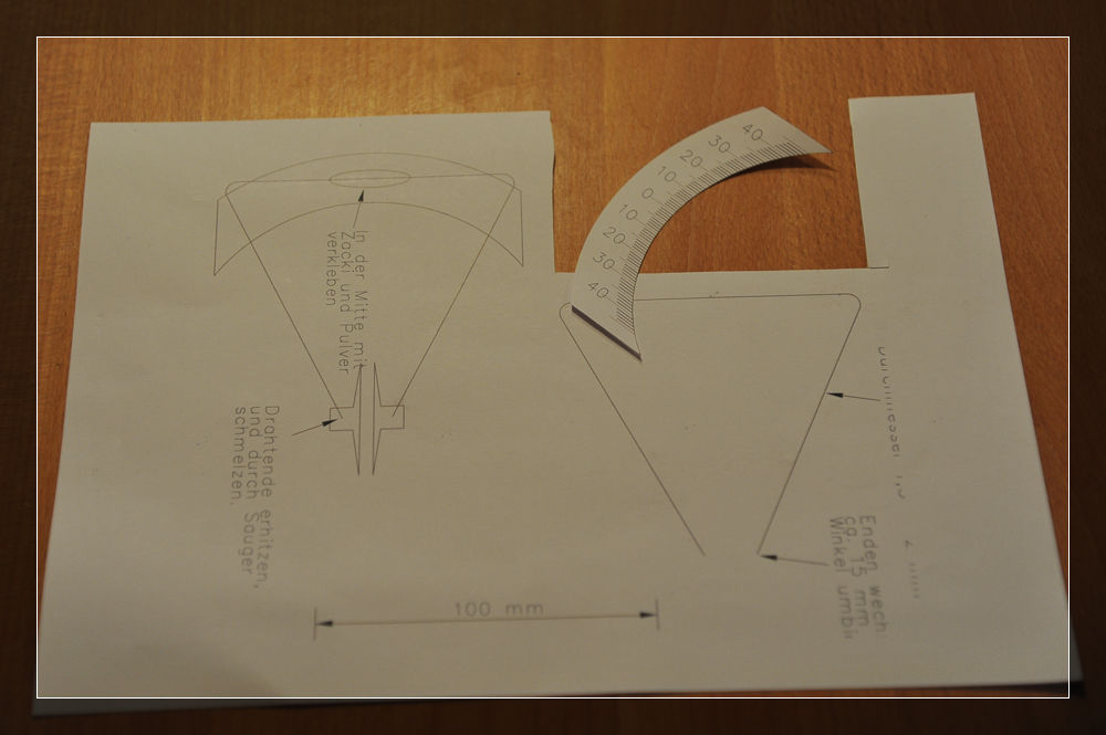 Um die Ruderausschläge einzustellen, wurde zuerst eine Einstelllehre gebastelt.